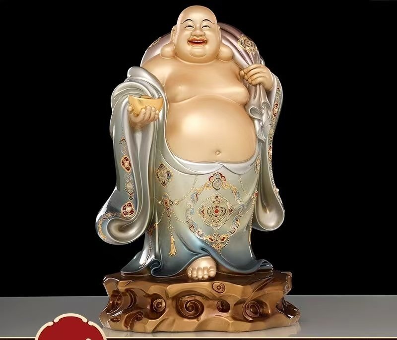 - **新品**純銅彩色弥勒仏菩薩家庭用招財置物大腹笑仏楽仏公司開業置物~高さ40×長さ28 cm