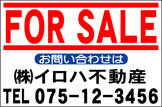 - 社名入付不動産募集看板「FOR SALE」Lサイズ60x91cm