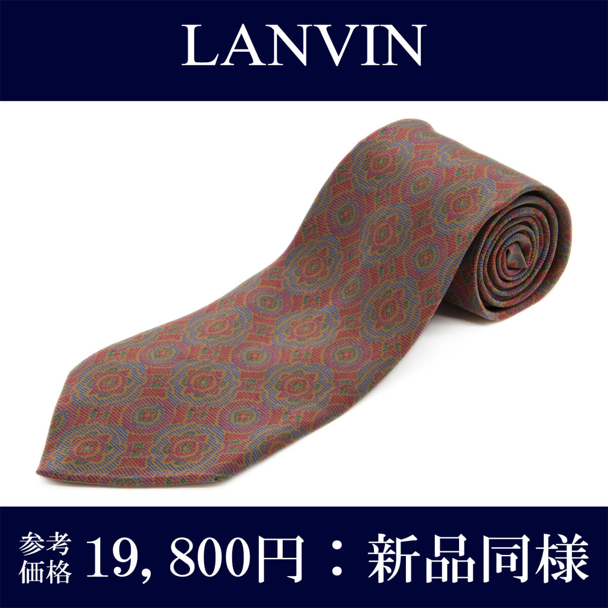 - 送料無料 ランバン ネクタイ 新品同様 シルク ボルドー 青 緑 ビジネス ブランド 花 フラワー 総柄 珍しい おしゃれ イタリア製 綺麗 N006