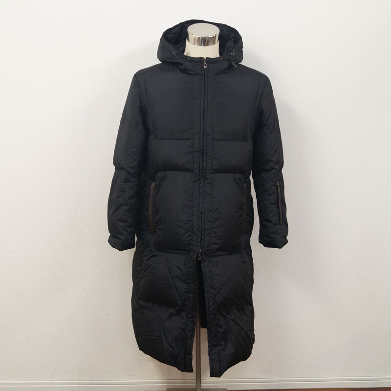 > yf88-COMME CA DU MODE MEN コムサ メン ダウンコート 2 ブラック ロング フード付 アウター レザー 防寒着