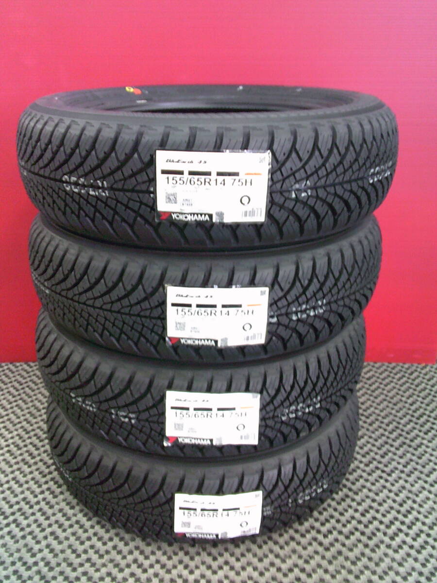 - 全国送料込み・2025年製・ヨコハマ オールシーズンタイヤ AW21 155/65R14 4本セット ブルーアース4S★G