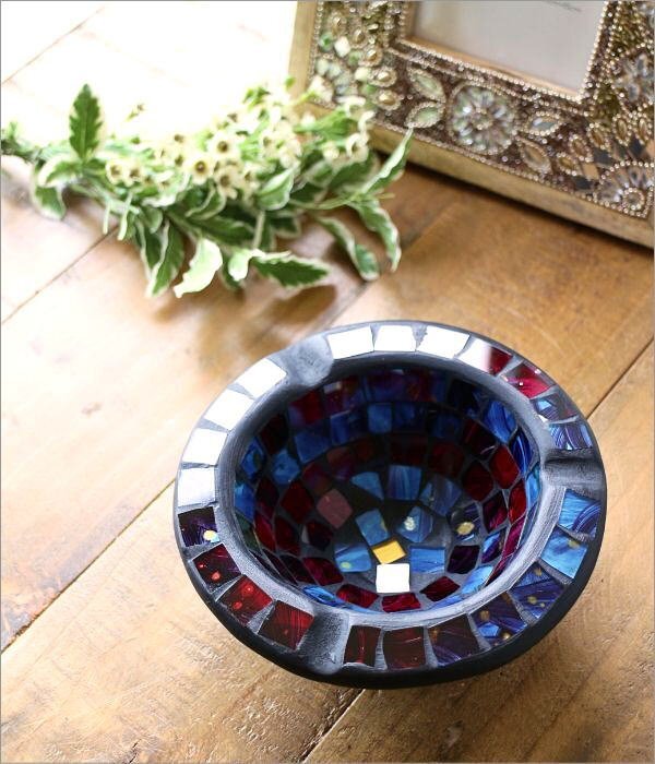 - 灰皿 おしゃれ 卓上 ガラス 小物入れ モザイクガラスの灰皿 サークル 送料無料(一部地域除く) tom6511