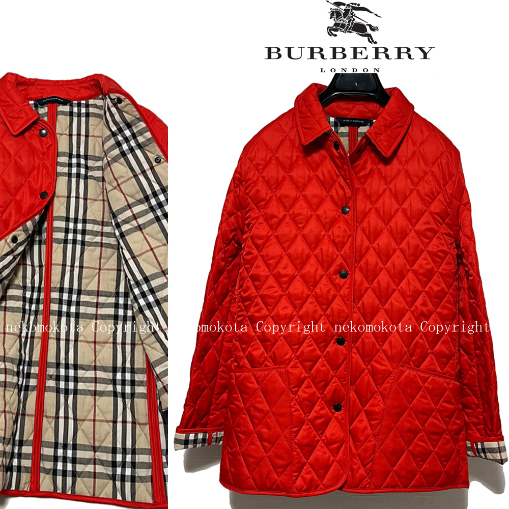 - 未使用 バーバリー ロンドン 裏地チェック 中綿 キルティング ジャケット S レッド 赤 レディース ブルゾン BURBERRY LONDON