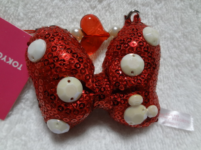 - TDRスパンコールリボンストラップ ミニー赤ビーズ