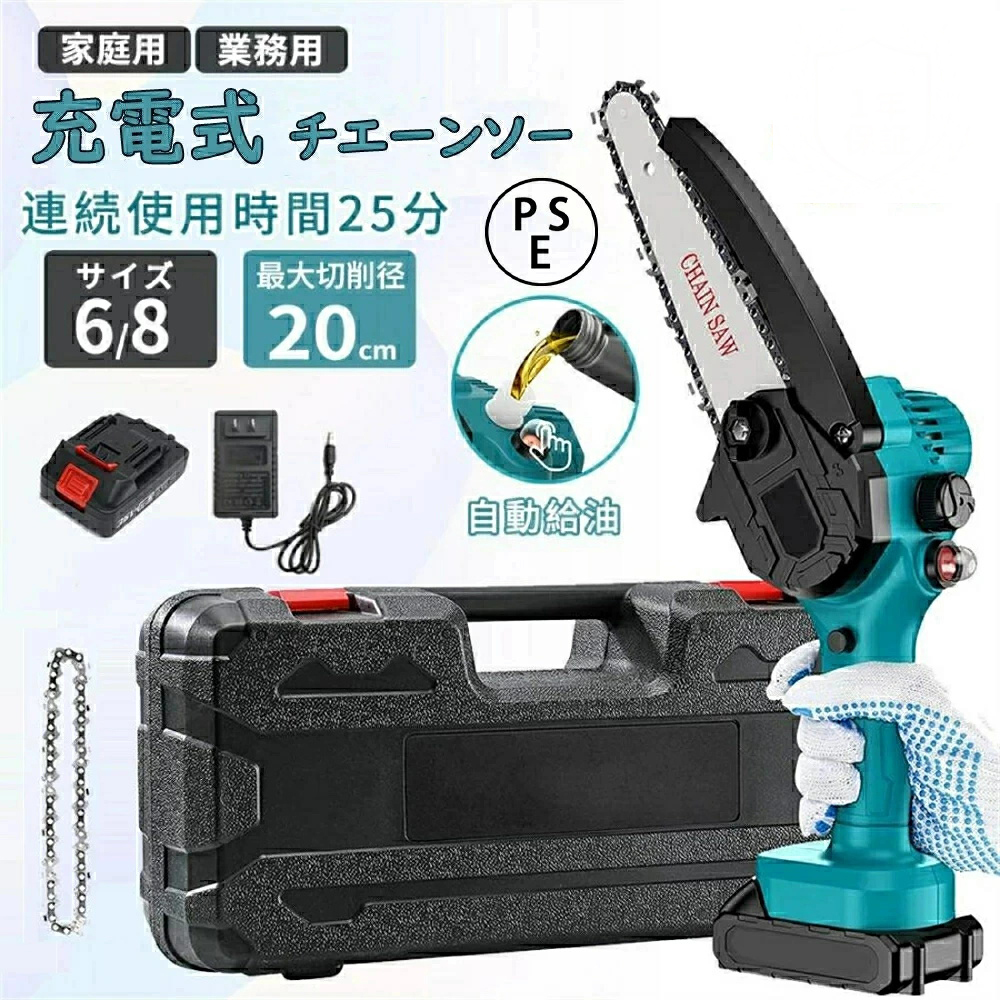 - 電動チェーンソー 充電式 6インチ 片手 バッテリー1個 切断直径150mm 小型 コードレス 電動のこぎり 安全ロック 操作便利 家庭用 299