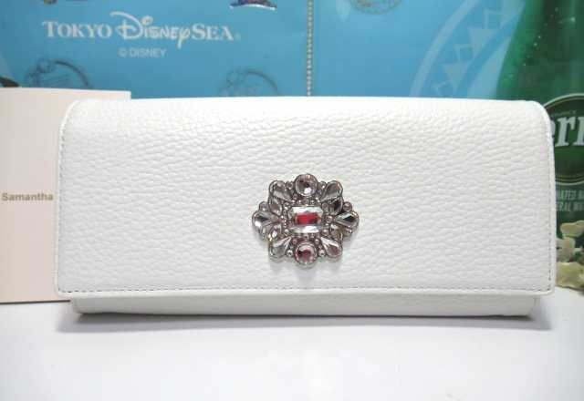 - 送料無料 55%引 サマンサタバサ デラックス 豪華 キラキラ ビジュー付 牛革 かぶせ 長財布 ホワイト 白 新品 証明書付 開運 金運UP