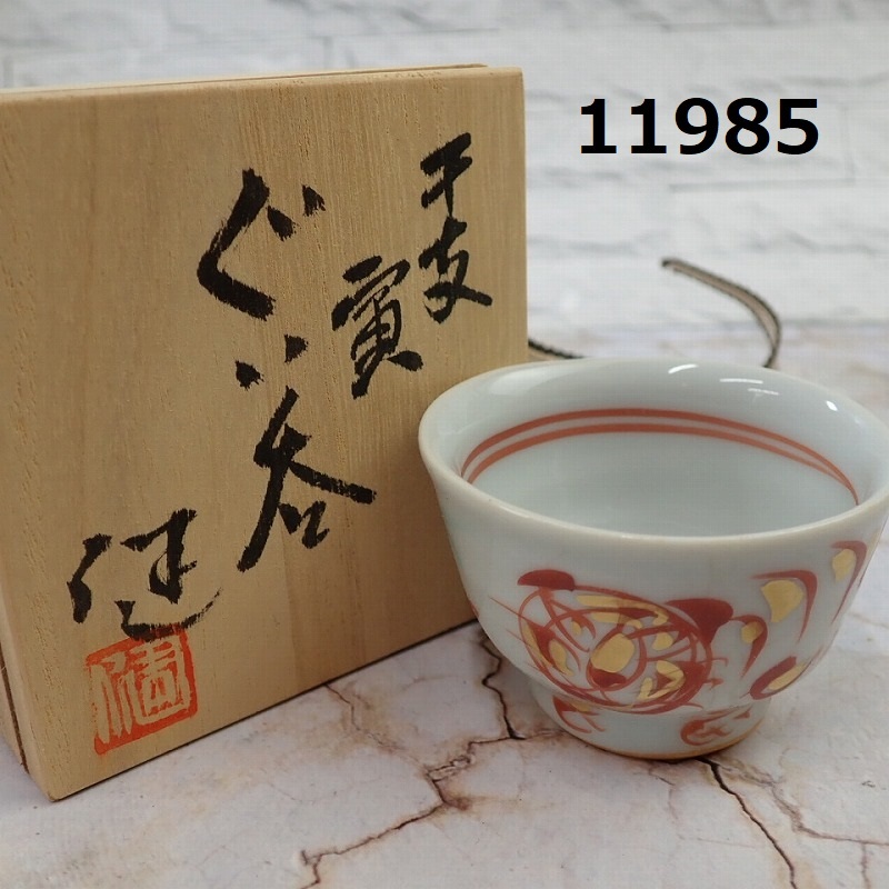 - ■FK-11985◆九谷焼 人気作家 赤地健 ぐいのみ 盃 干支 寅(とら) 20250313