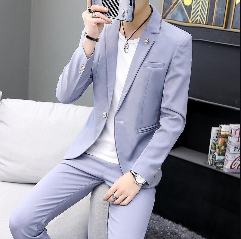 - 新作カジュアルスーツ メンズ セットアップ サマースーツ おしゃれ サマージャケット テーラード 長袖 ブルーお色選択可