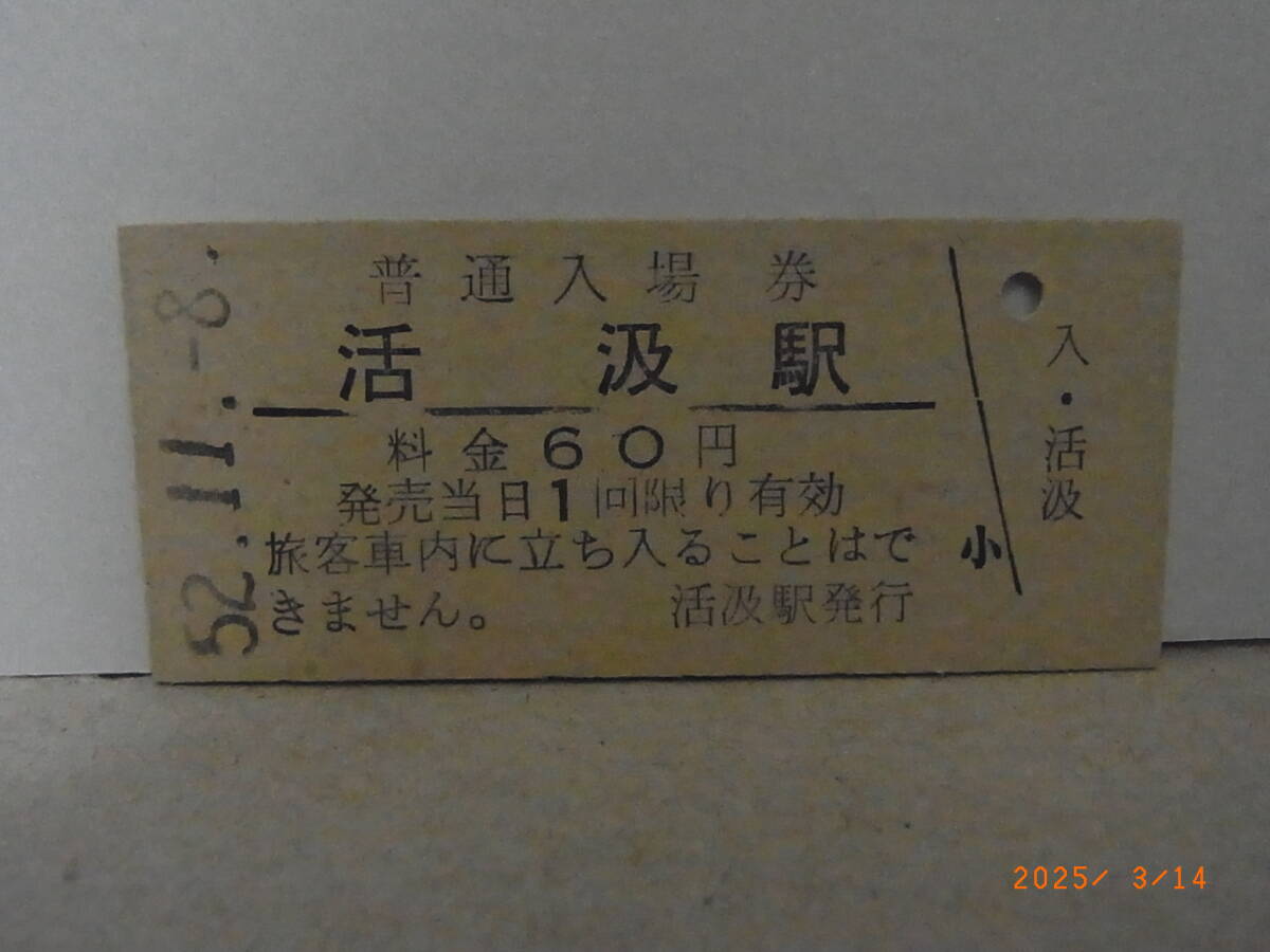 - 国鉄 相生線 活汲駅 60円普通入場券 昭52.11.8 0039 ★送料無料★