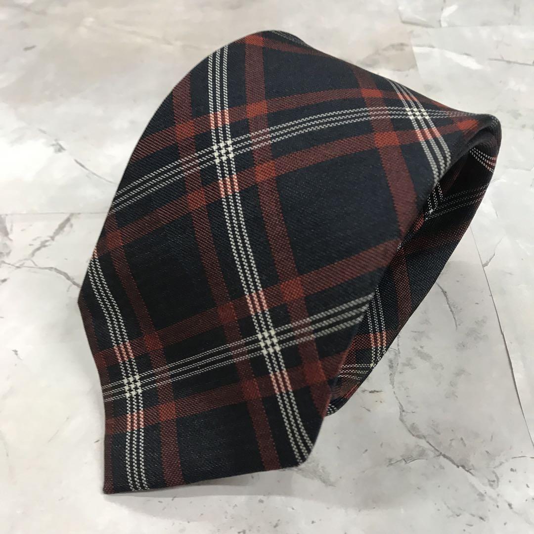 - ジルアンドモートン ネクタイ 紺 赤 白 チェック柄 シルク100%【n743】