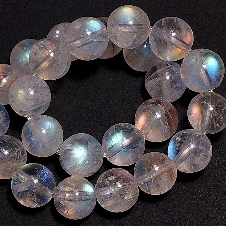 - レインボーシラー オーロラシラー ムーンストーン ブレスレット 7.5㎜ 15㎝ ホワイトラブラドライト オーラシラー
