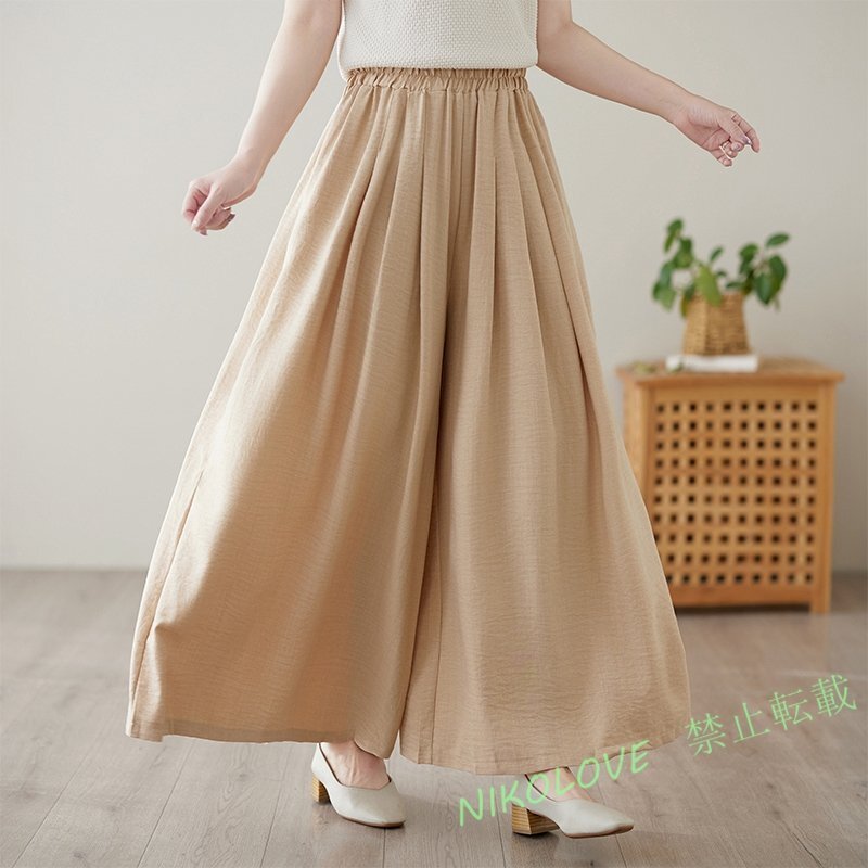 - ☆新品 カジュアル ゆったりサイズ レディース 着やせ 無地ギャザーワイドパンツ ベージュ MK413
