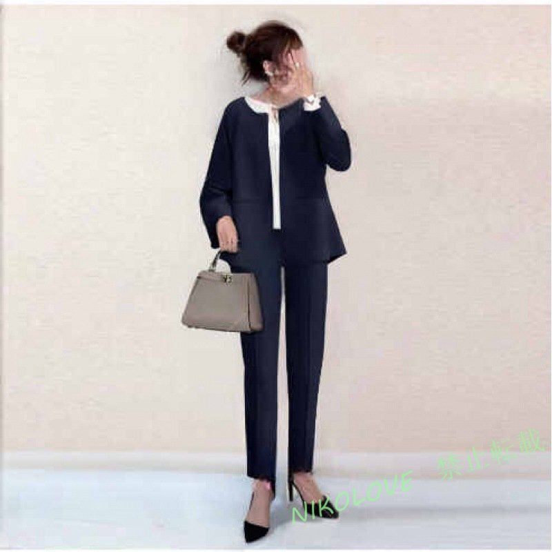 - ☆新品 パンツスーツフォーマルセットアップ入学式卒業式ママビジネス入園レディースネイビーオフィースカジュアルビジネスM MK557