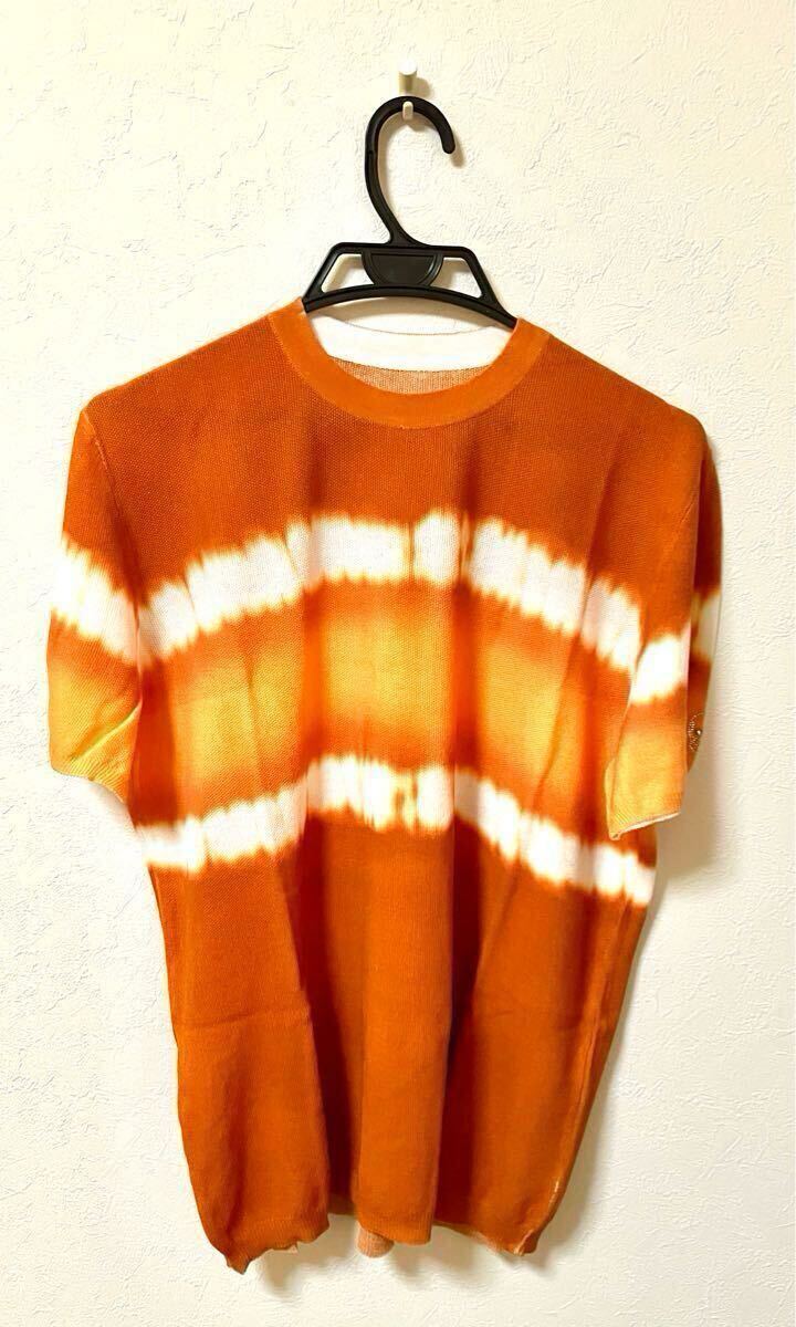 - 【新品未使用】Lucien pellat-finet ルシアンペラフィネ 半袖ニット(Mサイズ)/セーター/折り絞り/オレンジ/メンズ