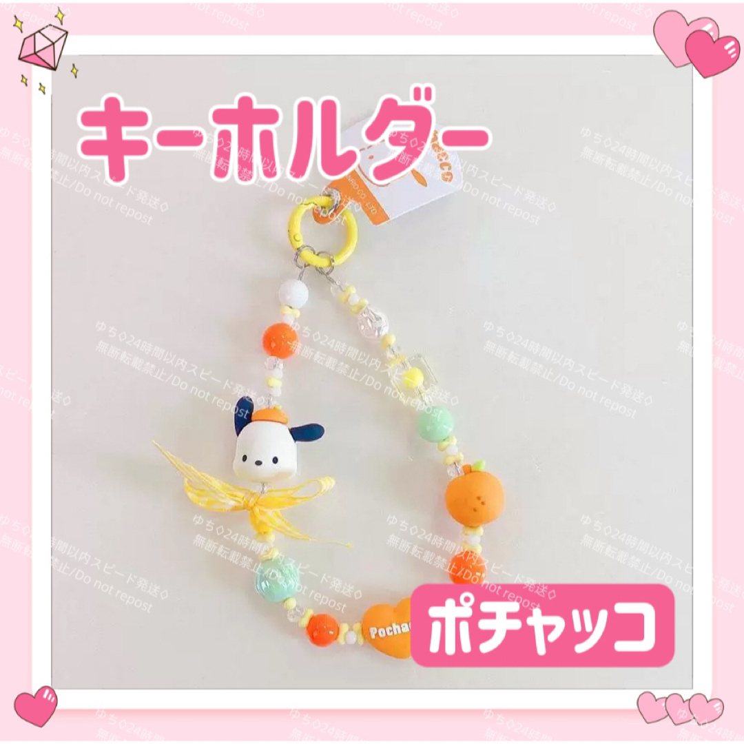 - 海外限定 サンリオ フルーツ キーホルダー ストラップ チャーム バッグチャーム キーリング スマホ ストラップホルダー 可愛い ポチャッコ