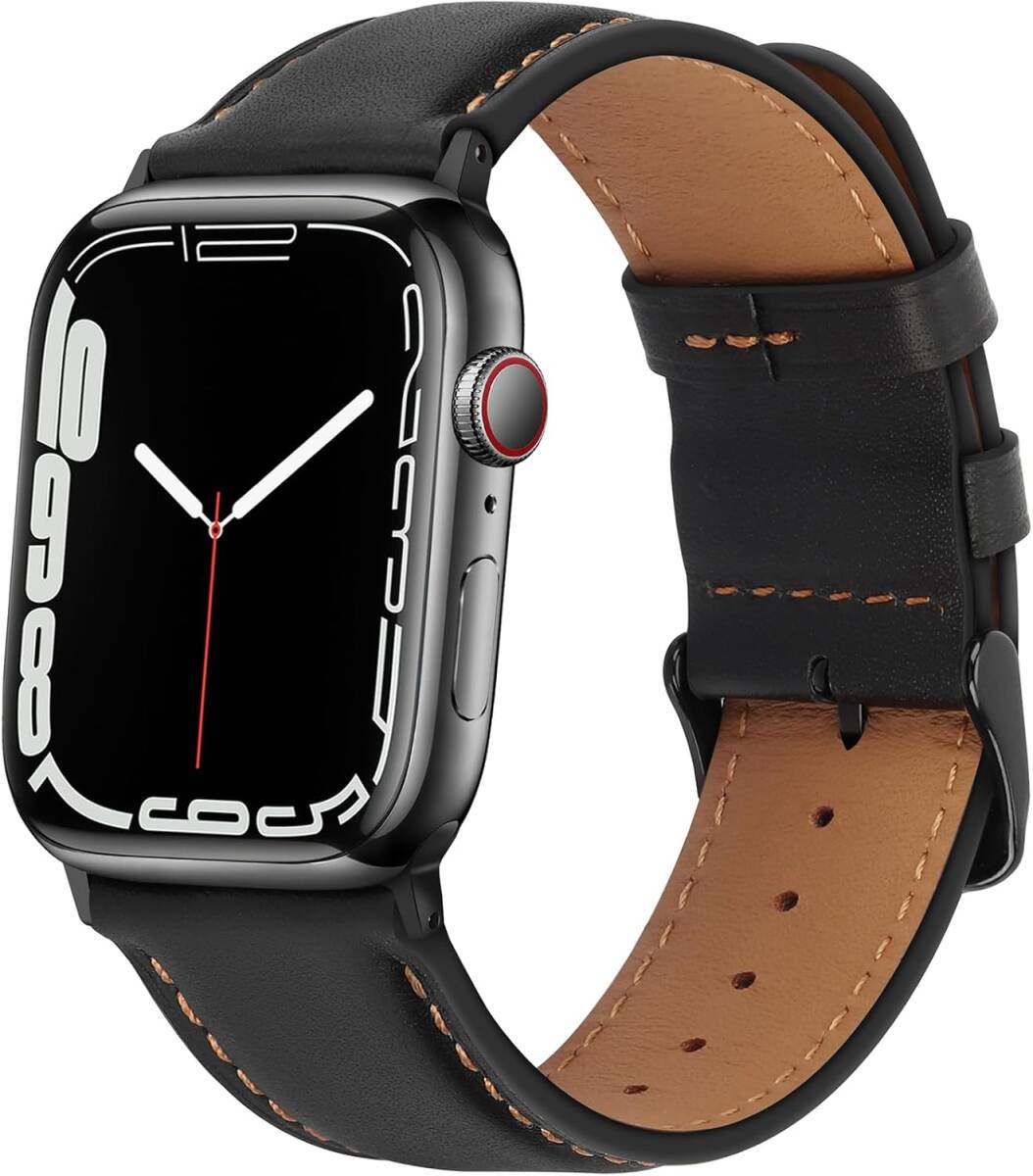 - [HITZEE] レザー コンパチブル Apple Watch バンド 49mm 46mm 45mm 44mm 42mm, 本革交換ストラップ (黒)