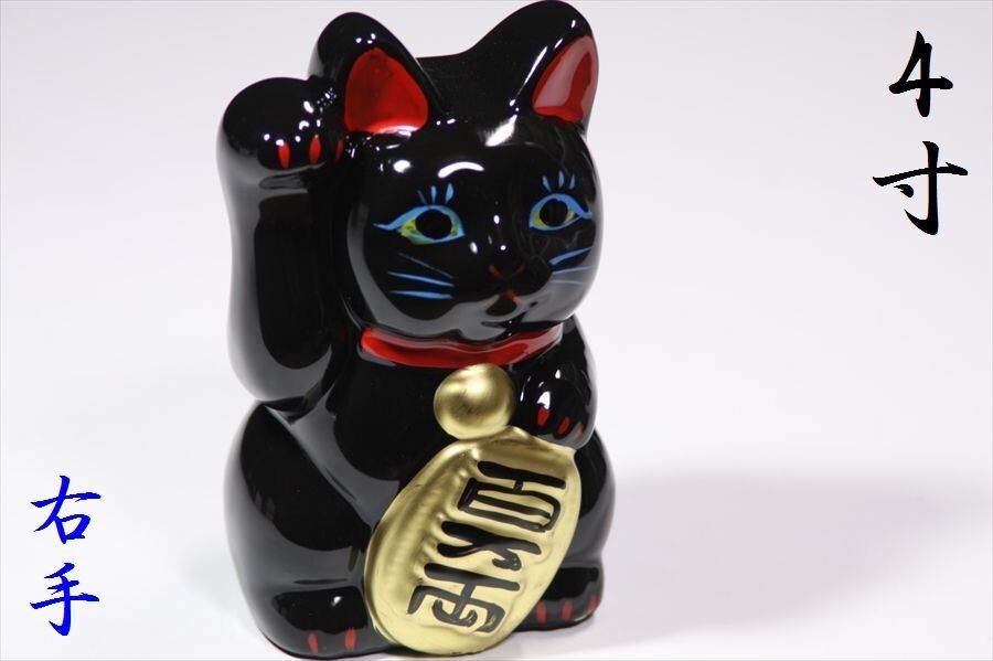 - 国産 ■ 病防 招き猫 ■黒 4寸■右手 高さ 約 12cm