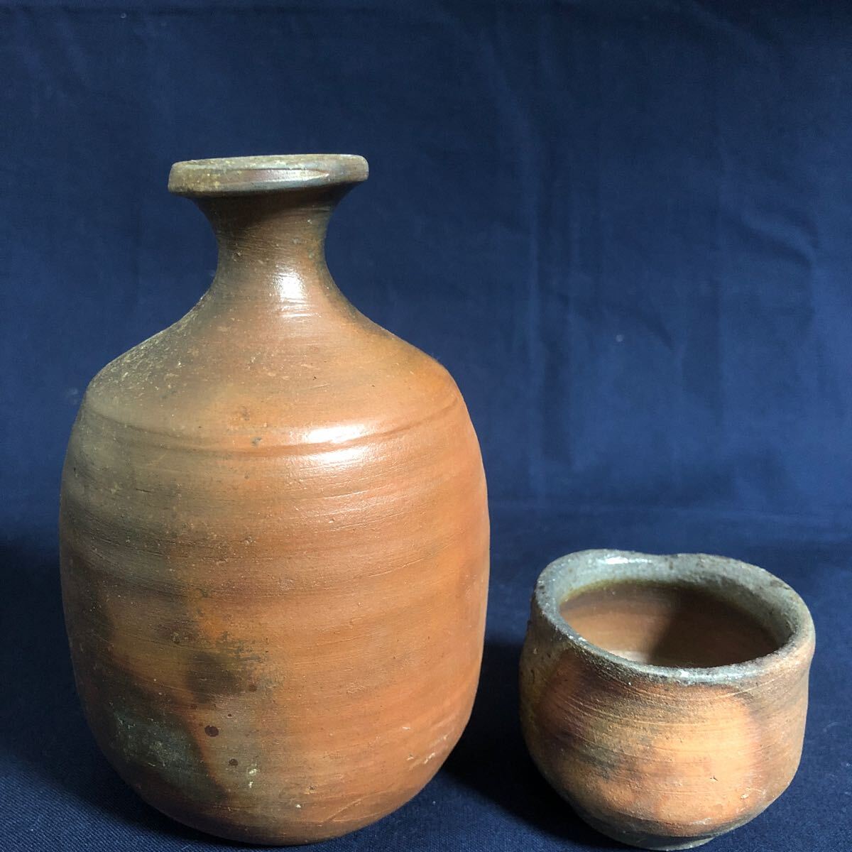 - 備前焼 徳利 ぐい呑付き 酒器 榊原学作 未使用 即決【61】★送料無料