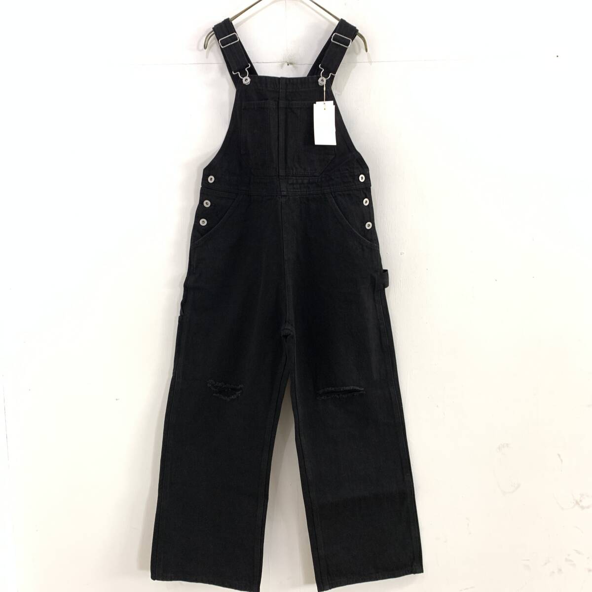 - ☆未使用品 RIVE DROITE リヴドロワ ダメージ加工 ブラックデニム オーバーオール サロペット サイズF 綿100%【送料一律/同梱可能】D