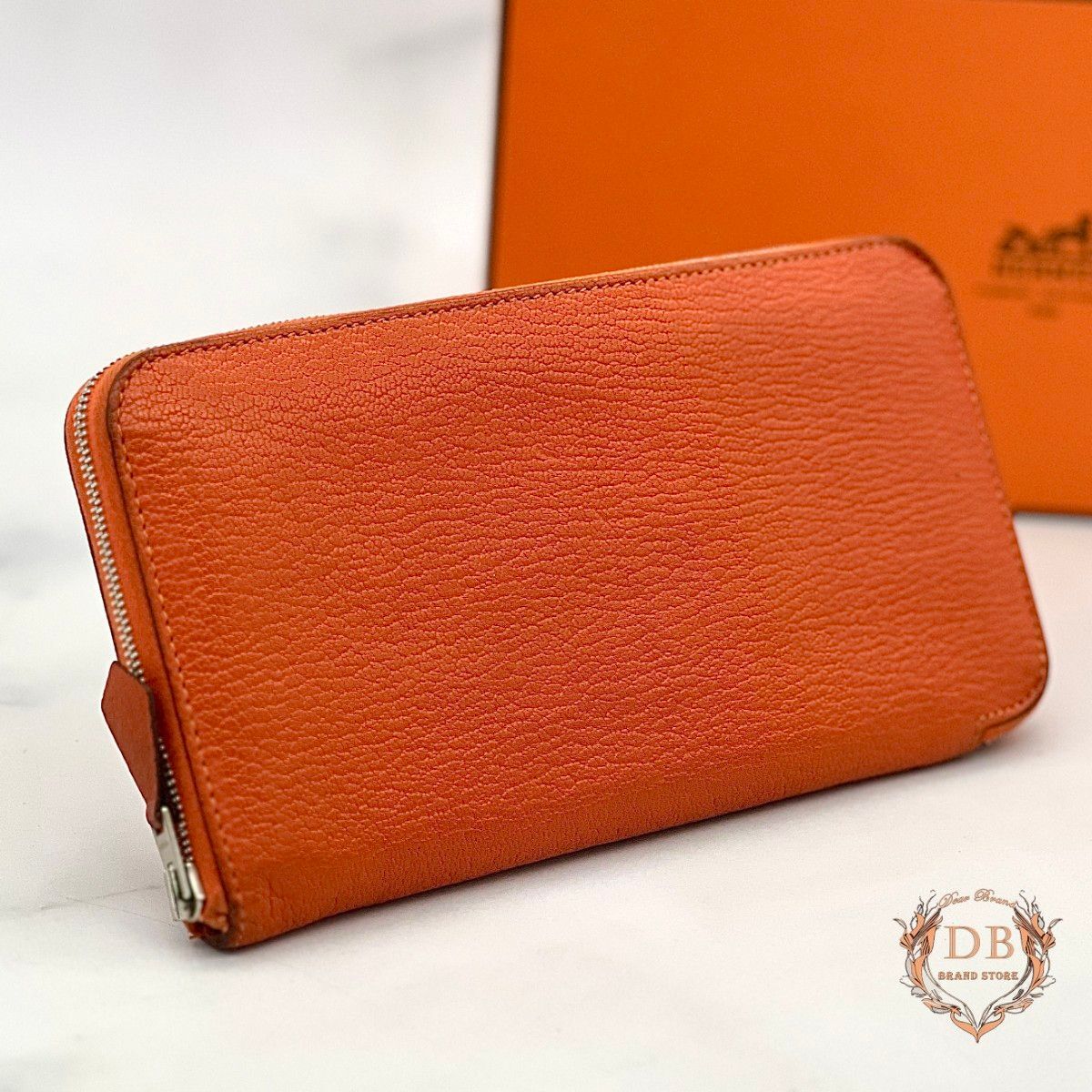 > エルメス アザップロング オールレザー オレンジ T刻印 2015 911 Hermes レディース 財布 クラシック シルバー ラウンド 鑑定済み Auth