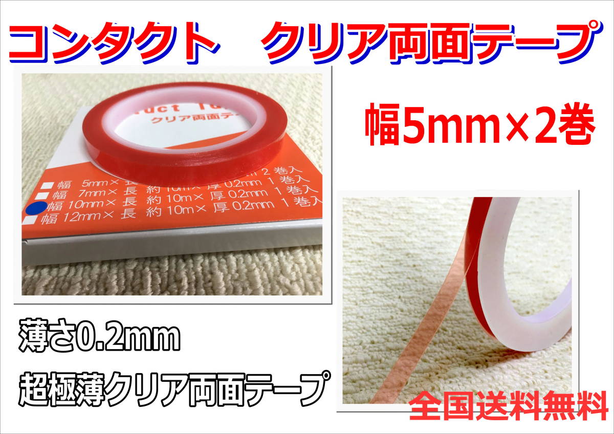 - (在庫あり)Contact 両面テープ クリア 5mm 2巻入り 極薄 粘着 送料無料 板金 DIY 木工 塗装