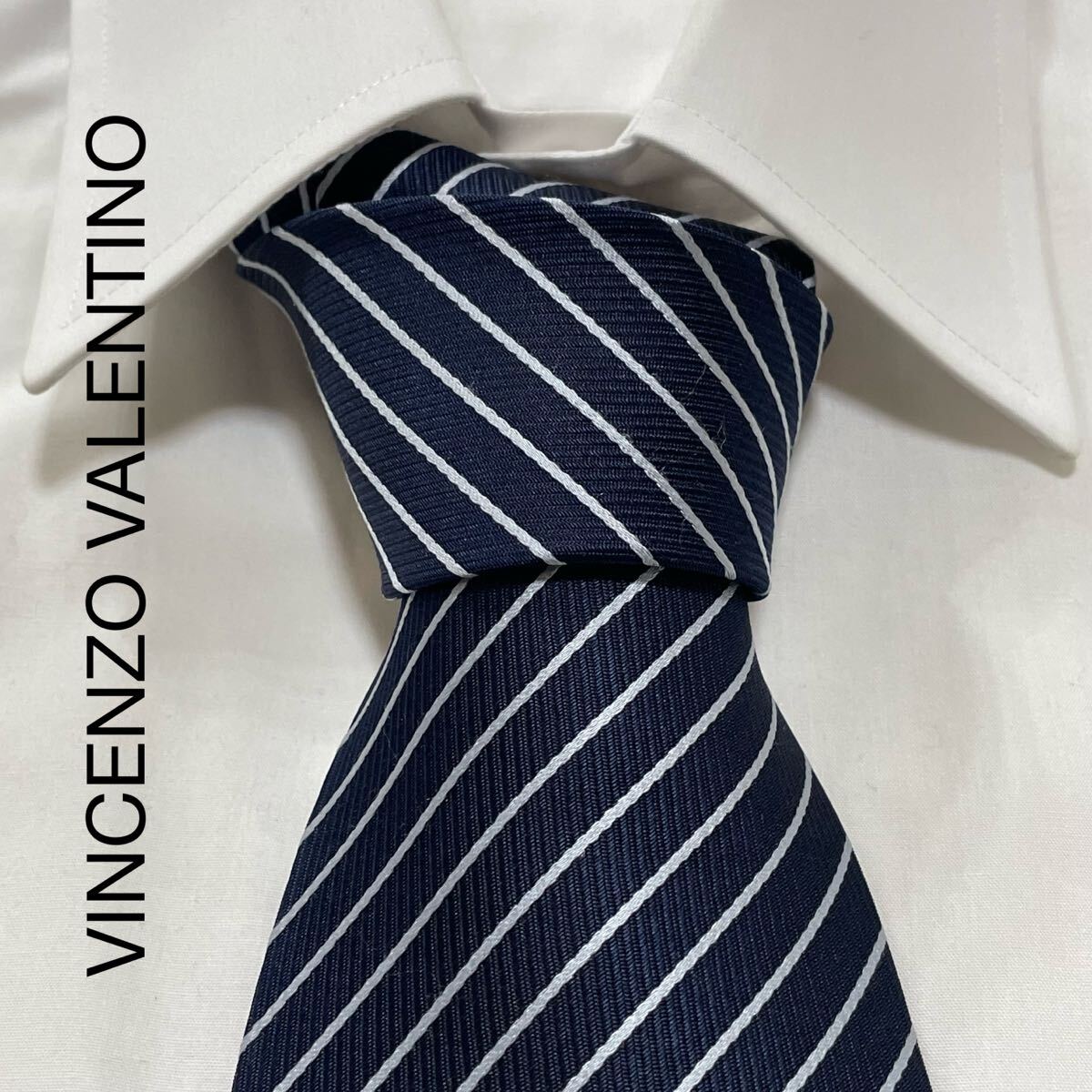 - VINCENZO VALENTINO レジメンタル ストライプ シルク ネクタイ ネイビー ライトブルー TG1190