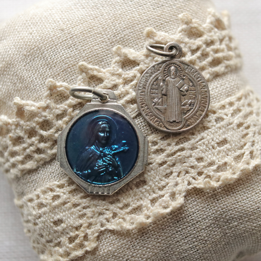 - フランス アンティーク 2個セット【リジューの聖テレーズ】【聖ベネディクト】メダイ/メダル イタリア ロザリオ キリスト 聖母 マリア/L