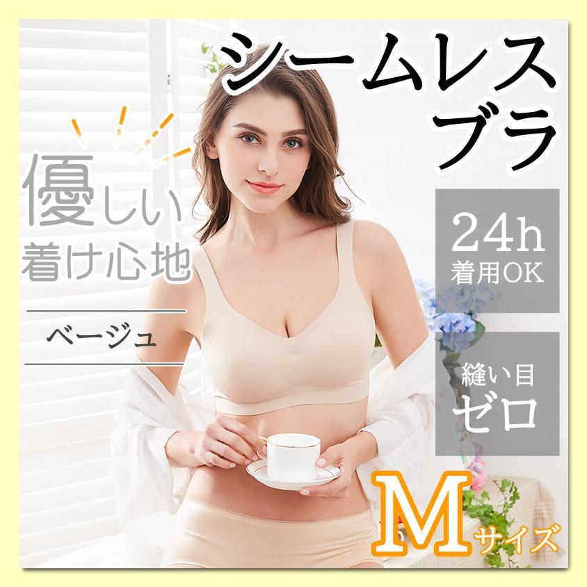 - シームレスブラ ベージュ M 育乳ブラ ナイトブラ 補正下着 美胸 ノンワイヤー
