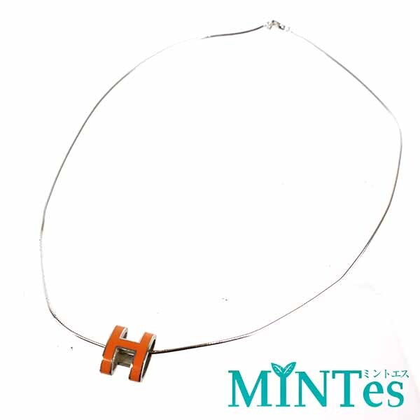 > Hermes エルメス ポップアッシュ ネックレス オレンジ×シルバー SV925×メタル レディース 女性 アクセサリー ワンポイント 人気 定番