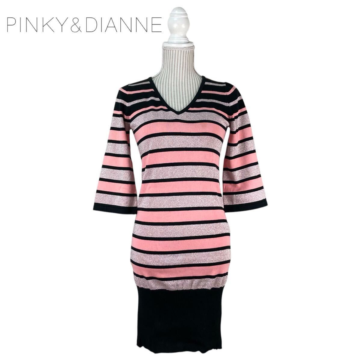 > 03T573☆ Pinky&Dianne ピンキーアンドダイアン ボーダー ラメ入り Vネック 薄手 ニット ワンピース 春秋 トップス レディース 38 Mサイズ