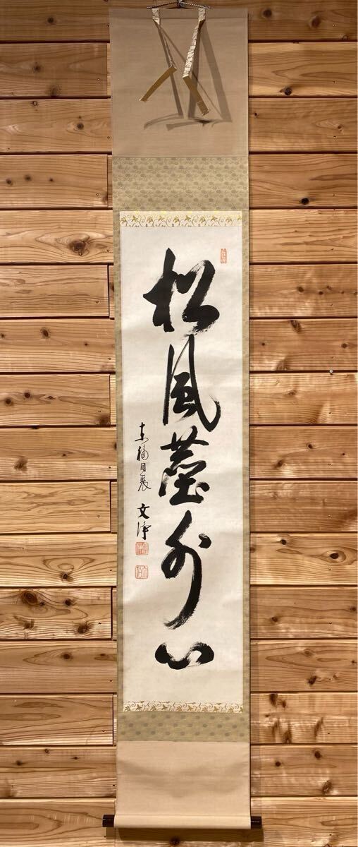 - 【真作】茶道具 『 掛軸「松風塵心外」西部文浄 肉筆 花押 共箱入』茶掛 一行書 茶の湯 茶事 茶室