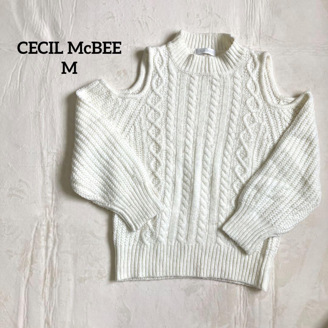 - セシルマクビー 肩出しニット【M】ケーブルニット ホワイト