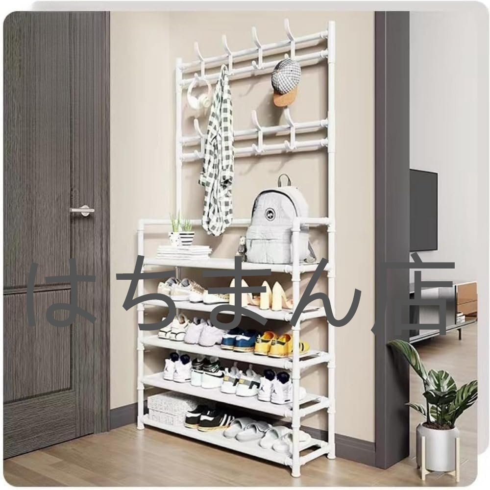 - シューズラック フック付き 靴棚 下駄箱 省スペース スリム バッグや帽子掛けにします多機能 コートラック 棚 靴収納 (白です,5層80CM)