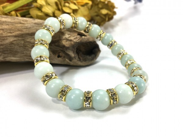 > アマゾナイト パワーストーン ブレスレット 天然石ブレス 10mm メンズ・レディース (ロンデル:ゴールド) 開運 浄化 数珠ブレス★