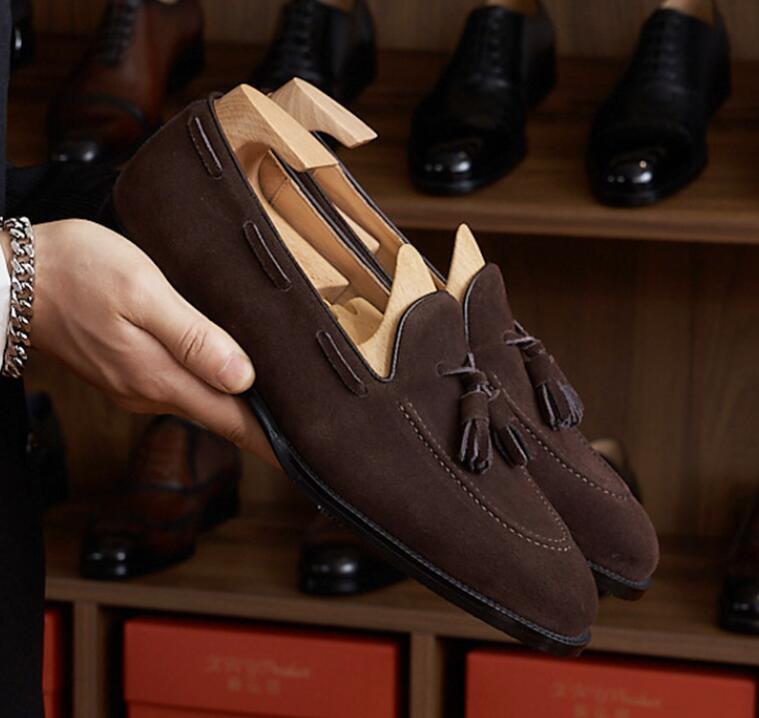 - 新品スエード革 レザーシューズ ビジネスシューズ 職人手作り 本革 紳士靴 革靴 牛革 タッセル ローファー 珈琲色 24.5cmお色選択可