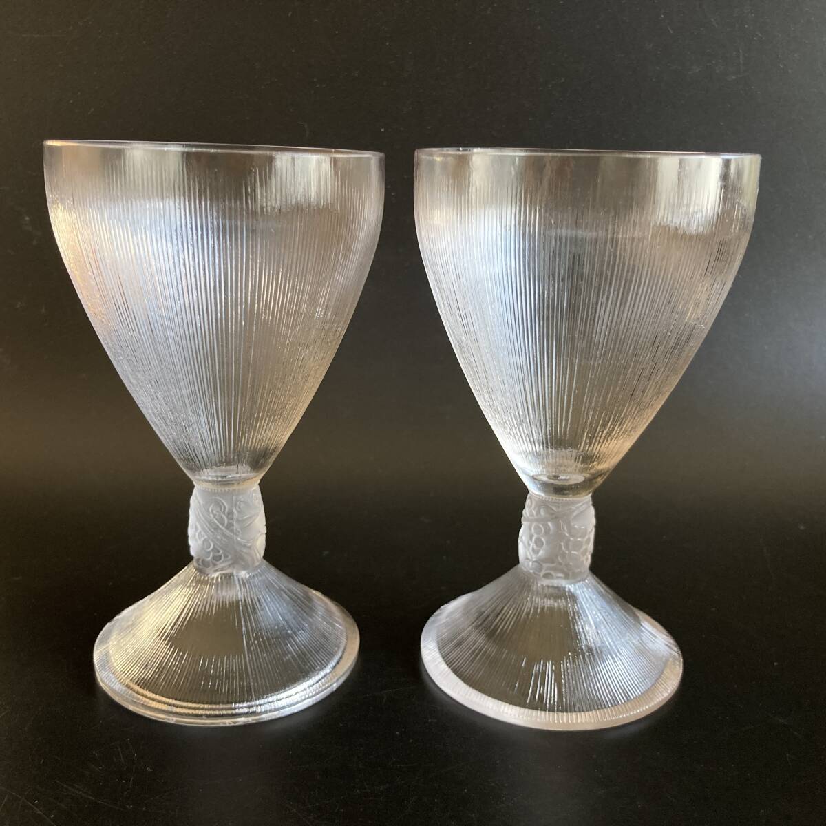 - 【本人作】R.LALIQUE ルネ・ラリック ワイン カクテル グラス 「Vigne Striee」葡萄と線 ぶどう 1920年 アンティーク 2客セット