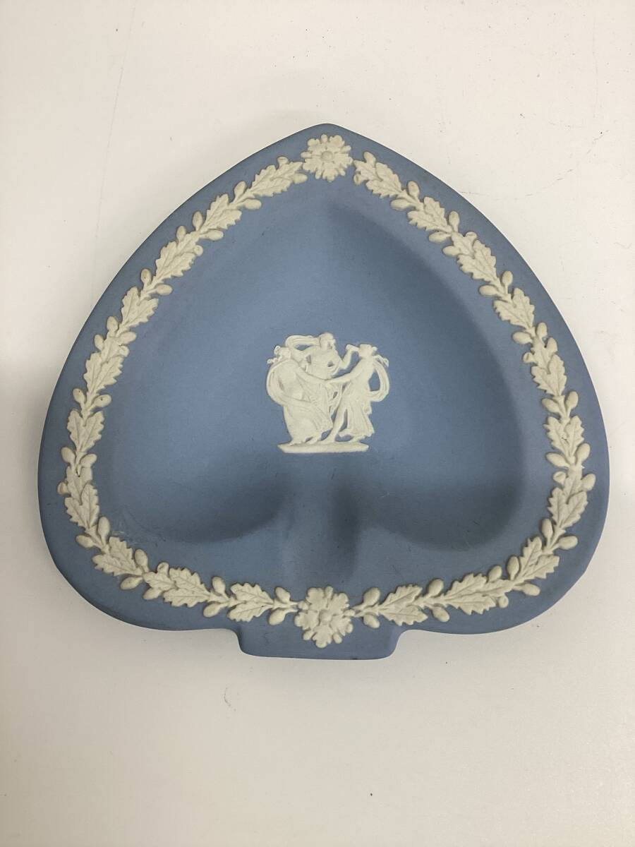 > 【4968】WEDGWOOD ウェッジウッド ジャスパー スペード型 置物 ブルー ジュエリー 小物入れ 小皿 陶磁器 トレイ