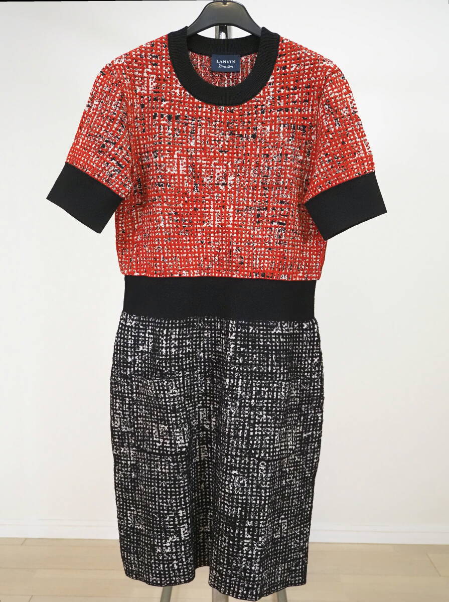 - 美品 LANVIN ランバン 15AW半袖ニットワンピースL赤×黒 Italy製 アルベール・エルバス