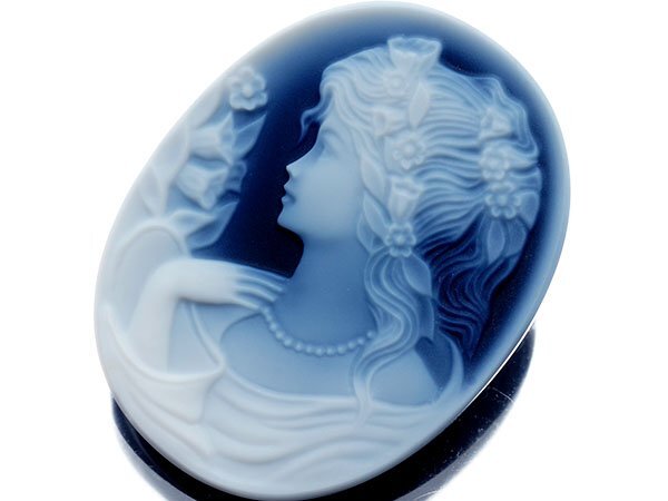 - 【ジュエリー極】ポニーテールとネックレスの貴婦人 高級ブルーストーンカメオルース 35.0mm×27.0mm a1822i【送料無料】