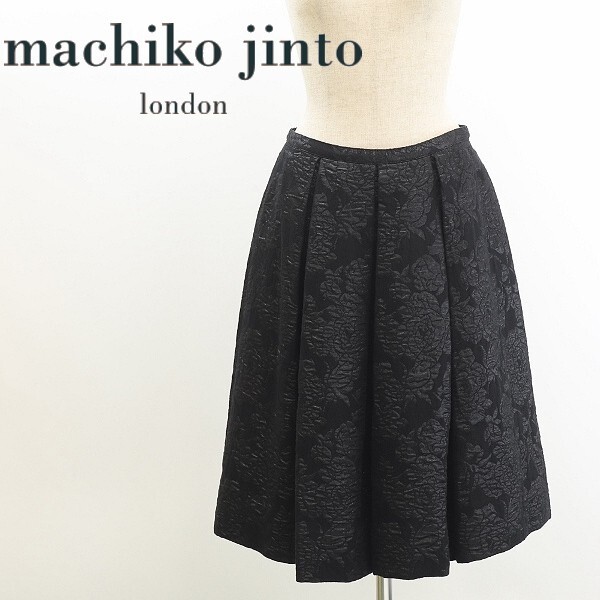 > 美品◆machiko jinto マチコ ジント ラメ混 花柄 タック フレア スカート 黒 ブラック 38