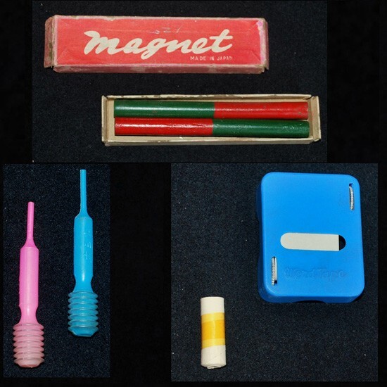 - ●2267● 昭和レトロ文房具 ◆ 特選 3 種 「スポイト 2 色 2 個 / 棒磁石 2 本 / ワードテープ 」◆ 趣きのある希少品、楽しめます!