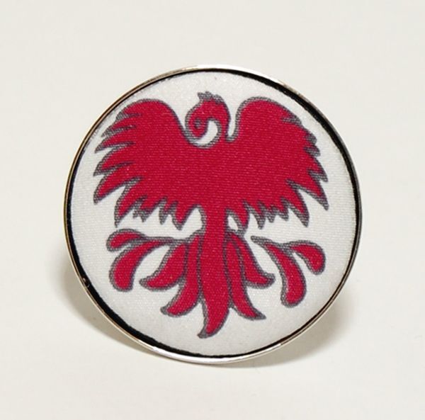 - 【帯飾り帯留めにも】くるみ飾りのスカーフ留め 薄地のスカーフ用 白 不死鳥柄 正絹 新品 手作り品 少し訳あり クリックポスト発送