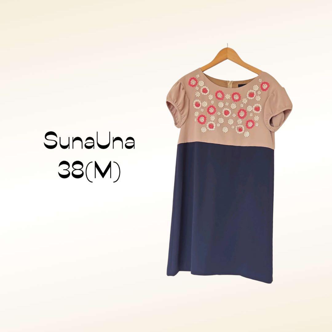 - スーナウーナ SunaUna ワンピース【38】花柄 花飾り 膝丈