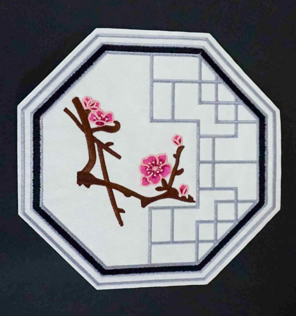 - 『大型八角形CN昔窓枠桃梅』■ 『中華 縁起物』 レトロデザイン◆新品 刺繍ワッペン(パッチ)◆激シブ◇《開運 ラッキーアイテム》