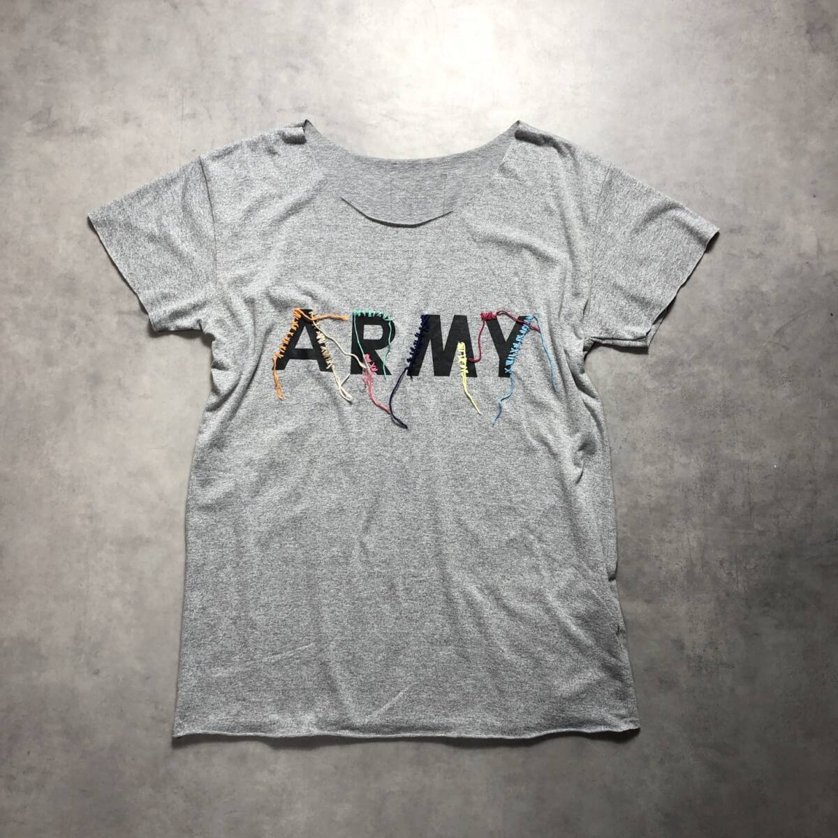 > WQ254●sand glass:ARMYリメイクカットオフTシャツ ●SMALL● グレー 刺繍 日本製 サンドグラス