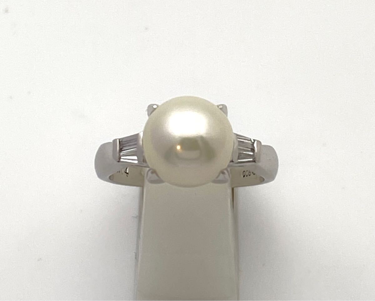 - 極美品 Pt900 天然あこやパールリング 8.8mm珠 D0.14ct天然ダイヤ リング 一粒真珠 1粒真珠 指輪 あこや真珠 6.3g