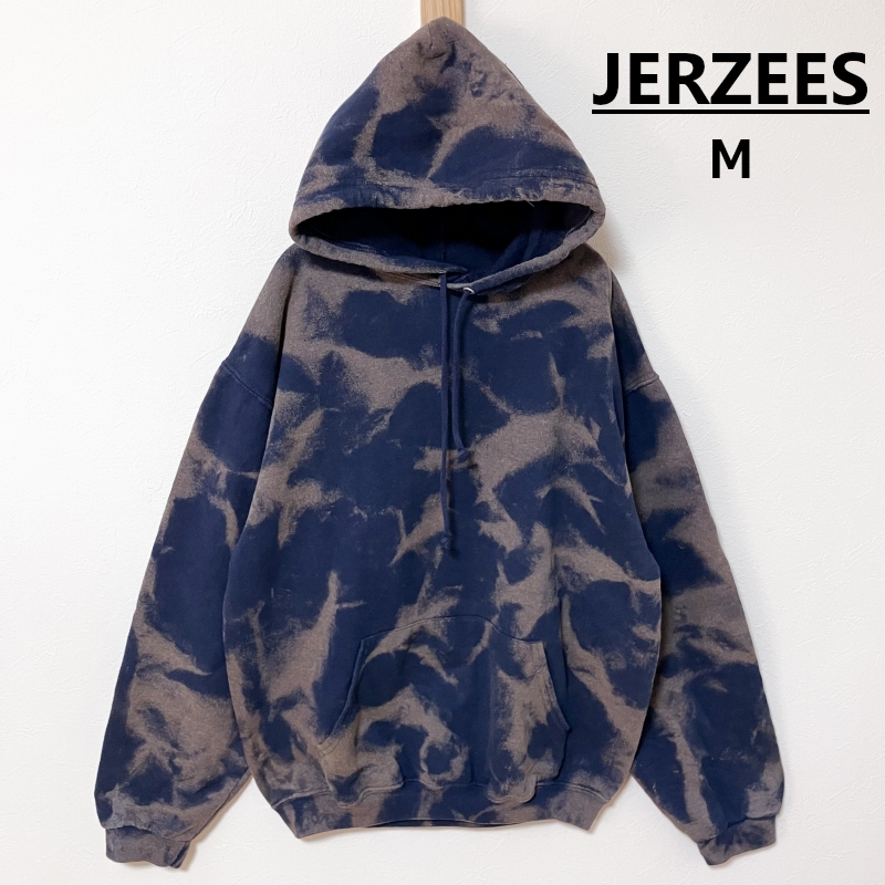 - JERZEES タイダイ柄ブリーチプルオーバーパーカーM 紺 ブランド 茶色