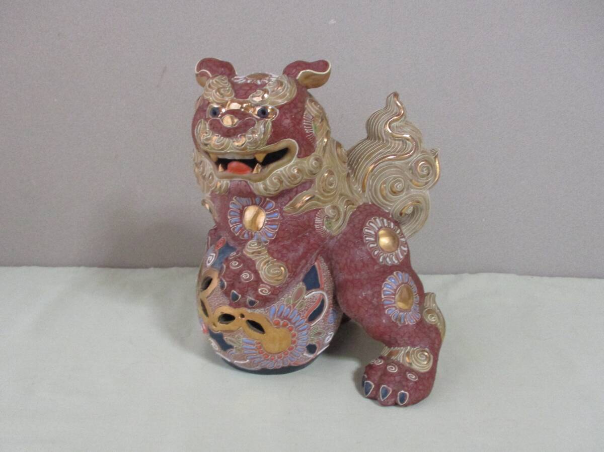 - 唐獅子の置物(玉乗り・九谷焼・赤茶色・陶磁器製): 魔除け・縁起物・陶芸・美術工芸品・インテリア