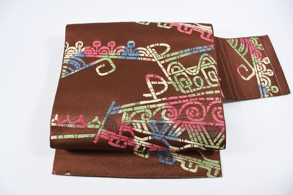- 名古屋帯 唐草文 幾何学模様 帯丈352cm ★着物屋 ne-12742 桜庭呉服店