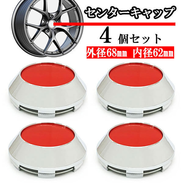 > ホイールセンターキャップ 68mm 62mm 4個 DIY ホイールカバー センターカバー 車 センターキャップ G シルバー×レッド 送料無料